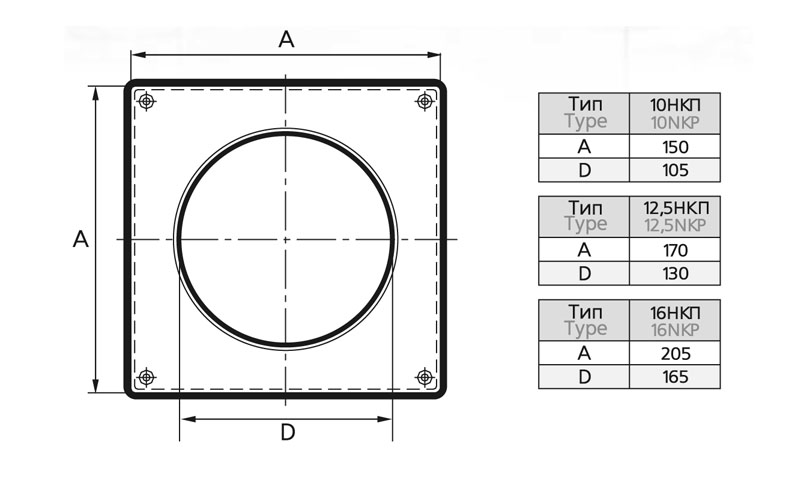 Накладка торцевая 170х170, для круглого воздуховода D125