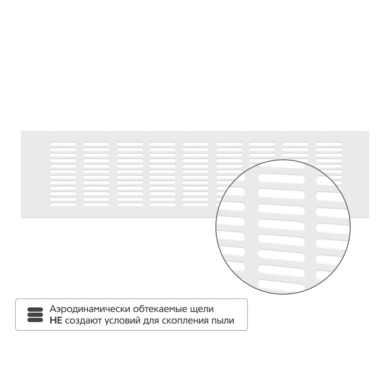 • Аэродинамически обтекаемые щели не создают условий для скопления пыли