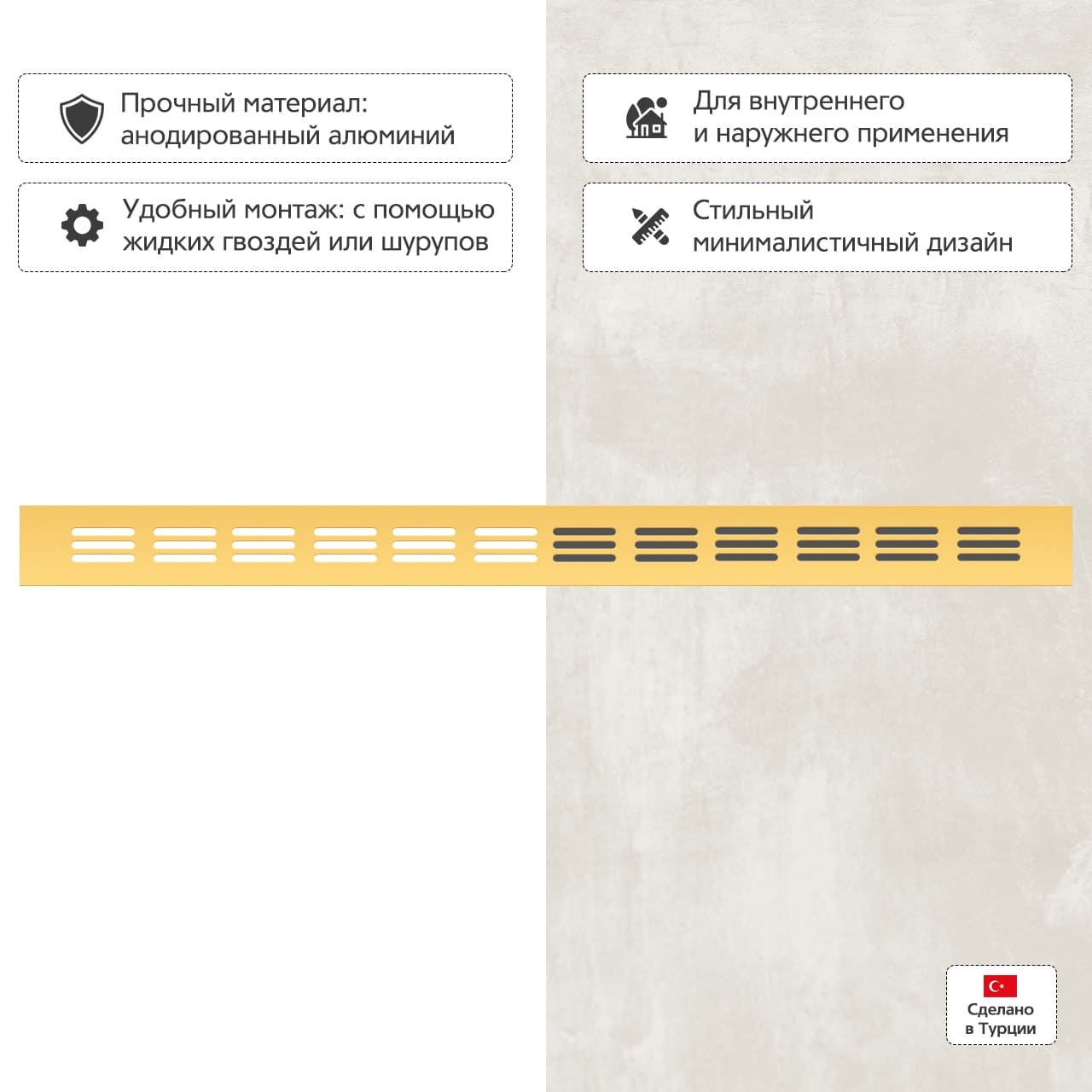 Прямоугольная вентиляционная решетка изготовлена из анодированного алюминия.