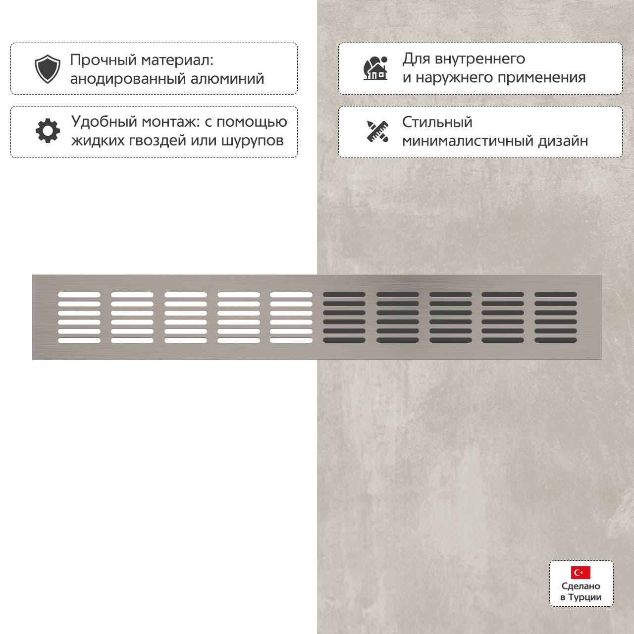 -Вентиляционная решетка Благовест 60x400, матовый метал