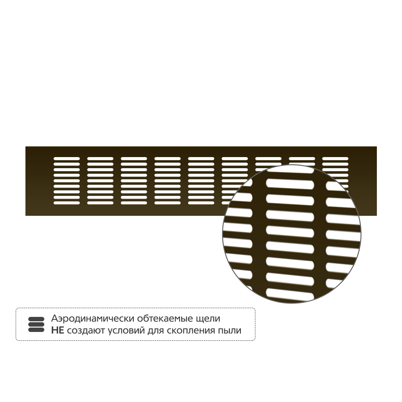 Аэродинамически обтекаемые щели не создают условий для скопления пыли -