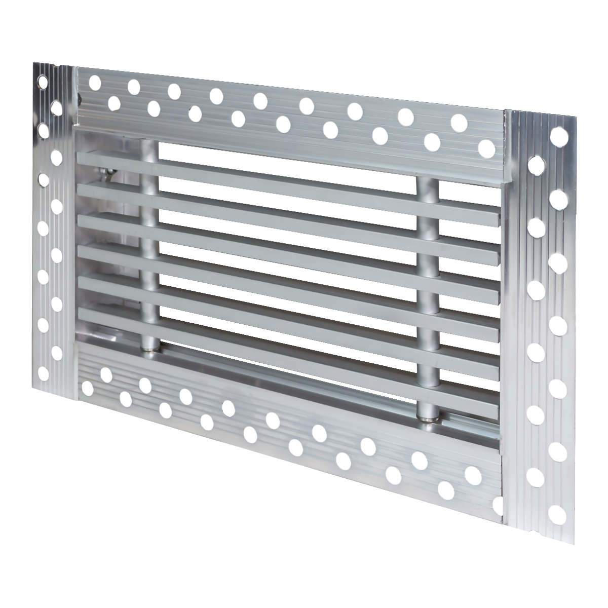 Данная решетка подходит для монтажа на любую поверхность под финишную отделку. Рамка и экран изготовлены из алюминия, опора экрана - из оцинкованной стали. Рама оснащена «полкой» 1,9 мм и рифлеными краями для большей адгезии финишного материала – шпатлевки, цемента. Решетка имеет съемную центральную часть с фиксированным углом наклона ламелей 0°. Она крепится к корпусу прочными металлическими тросиками, легко снимается для очистки и удобного обслуживания.