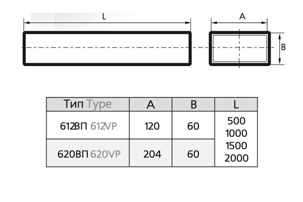 Воздуховод прямоугольный ПВХ 60х120, L=0,5м