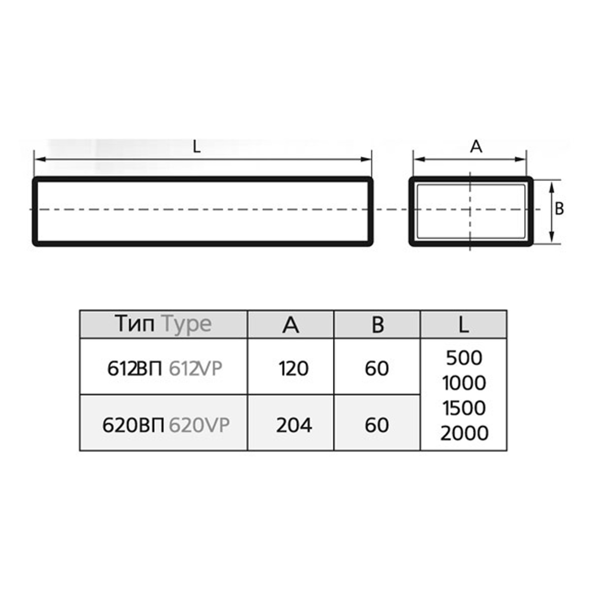 Воздуховод прямоугольный ПВХ 60х204, L=1,5м