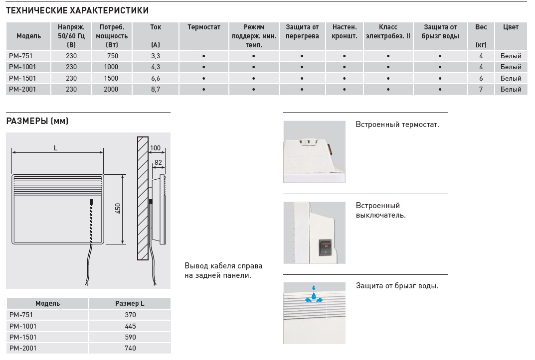 Электрический конвектор серии PM предназначен для обогрева жилых или общественных помещений.