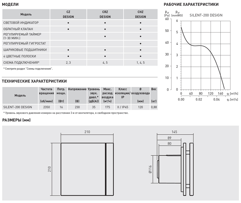 Серия вентиляторов SILENT представлена тремя типоразмерами: SILENT-100, SILENT-200 и SILENT-300, которые доступны с различными вариантами управления ( таймер, датчик влажности, датчик)
